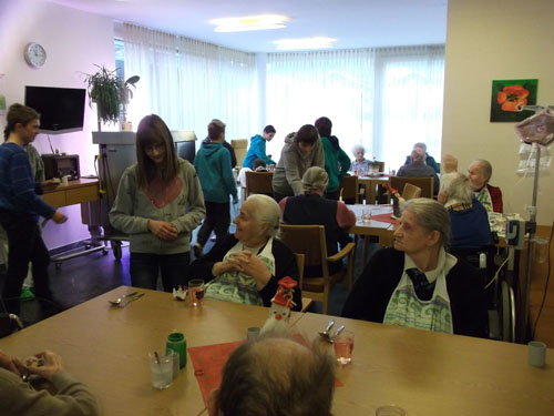 Abwechselnd besuchen die Schüler/innen einmal in der Woche, im Religionsunterricht, alte Menschen im Altersheim Sillian, um ihnen „15 Minuten Advent“ zu schenken und somit etwas Freude zu bringen.