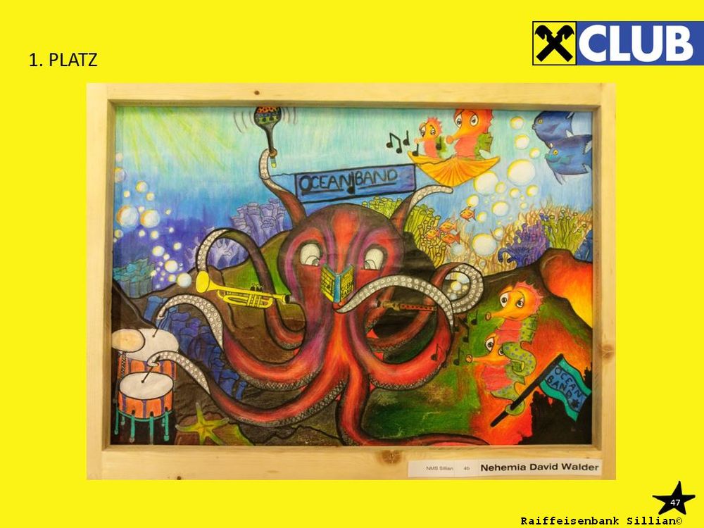 Nehemia Walder aus der 4b Klasse wurde mit seiner farbenfrohen „Ocean Band“ Gesamtsieger der NMS Sillian. Irina Reider aus der 3m Klasse erreichte den fantastischen 2. Platz der NMS Sillian. Sie konnte sich sogar unter allen Zeichnungen von ganz Tirol durchsetzen und wurde Landessiegerin.