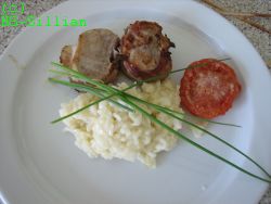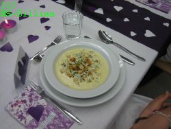 Knoblauchcremesuppe                                  Schweinemedaillons im Speckmantel