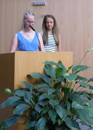 Am Schluss ließen Schülerinnen der 4. Klassen die Zeit an unserer Schule Revue passieren. |
