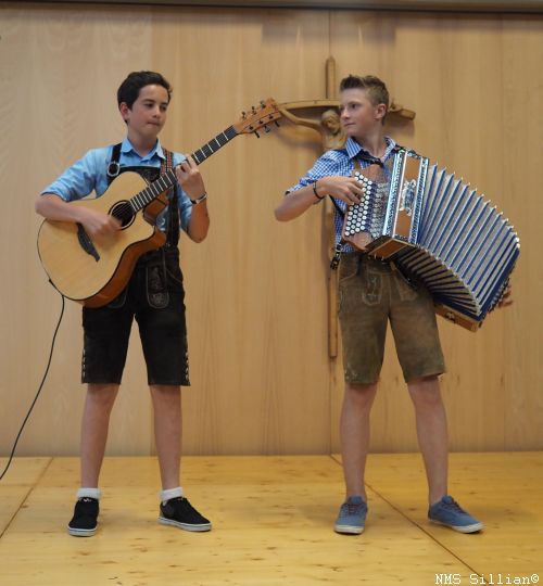 Lukas an der Gitarre und Florian an der Ziehharmonika hielten die Stimmung hoch.