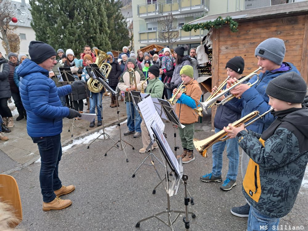 Auch heuer haben eine Bläsergruppe und der Schulchor der MS-Sillian den Adventmarkt musikalisch untermalt. Die Besucher wurden von festlichen Klängen, traditionellen Weihnachtsliedern und weihnachtlicher Musik begleitet, während sie die Stände mit handgemachten Produkten, Leckereien und Dekorationen durchstöberten.