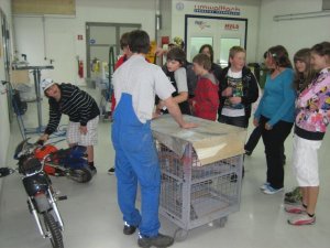 Wie die gelernte Theorie in der Praxis funktioniert, wurde ihnen von zwei Mechaniker anhand einiger Fahrzeuge demonstriert.