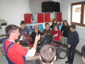 Auch wurde ihnen anhand eines Gocarts die genaue Funktionsweise eines Autos erklärt.