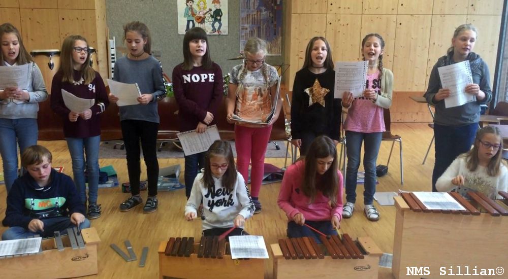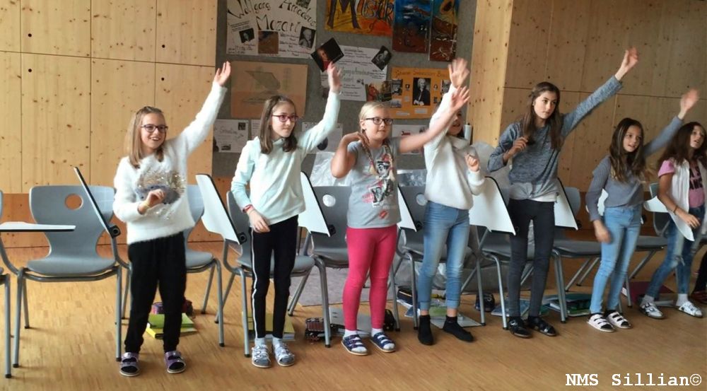 Mehr als die Hälfte des Schuljahres sind nun schon vorbei und die Schülerinnen und Schüler der Schwerpunktklasse 1m fühlen sich sichtlich wohl in ihrer Klasse. Im Musikunterricht wird nicht nur Musiktheorie gelernt, sondern auch besonders viel gesungen und getanzt. Außerdem musizieren die Schülerinnen und Schüler mit Instrumenten und probieren verschiedene Rhythmusstücke aus. Langweilig wird es im Musikunterricht jedenfalls nicht!