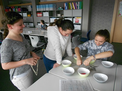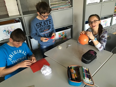 Die erste Station stand unter dem Titel Teamfähigkeit. Das Ziel dieser Station war es, ein Ei so zu verpacken, dass es, wenn man es von der Feuerleiter der Schule hinunterwirft, nicht zerbricht. Und tatsächlich schafften es einige Teams, das Ei so zu verpacken, dass es heil am Boden ankam.