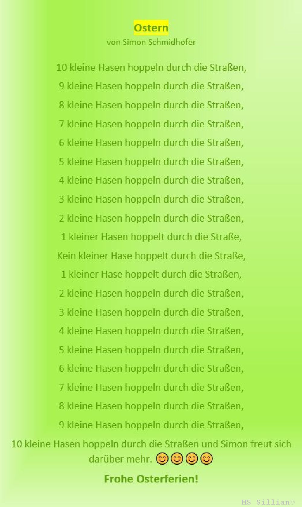 Vor Ostern schauten sich die Schülerinnen und Schüler der 2b an, welche Art von Gedichten es gibt. Jede/jeder entschied sich für eine Lieblingsform und versuchte sich dann als Lyrikerin/Lyriker!