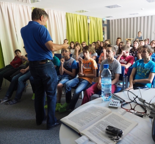 Er erläuterte sehr anschaulich, wie sich der Text im Gesetzbuch im realen Leben darstellt, und welche Folgen ein Fehlverhalten der Jugendlichen in ihren Leben haben kann. Er gab viele Beispiele, wie solch eine Tat das Leben der Täter und Opfer nachteilig und nachhaltig verändert.