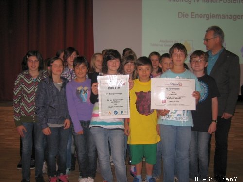 Am Dienstag, den 17.5.2011, war es für unsere angehenden Energiemanager soweit. Im Kultursaal Sillian fand die offizielle Präsentation des Projektes statt. Die engagierten SchülerInnen der Hauptschule Sillian führten das Publikum kurz in ihre Arbeit ein und stellten die Messergebnisse sowie das zur Verfügung gestellte „Energielabor“, welches aus diversen Versuchen zum Thema Energie besteht, eindrucksvoll vor. Auch SchülerInnen der LEWIT Innichen, eine Wirtschafts- und Tourismusschule, präsentierten ihre Eindrücke, Erlebnisse und Ergebnisse. Neben den teilnehmenden Klassen waren auch Herr Direktor Peinstingl (HS-Sillian), Frau Beutel (Vizerektorin LEWIT), Herr BM Mag. Popeller (Obmann- Stellv. - Regionalmanagement Osttirol), Fr. Mag. Brunner (Regionalmanagement Ostirol) anwesend, die den Energiemanagern für ihren Fleiß und ihr Interesse dankten und schließlich die Siegerklassen prämierten.