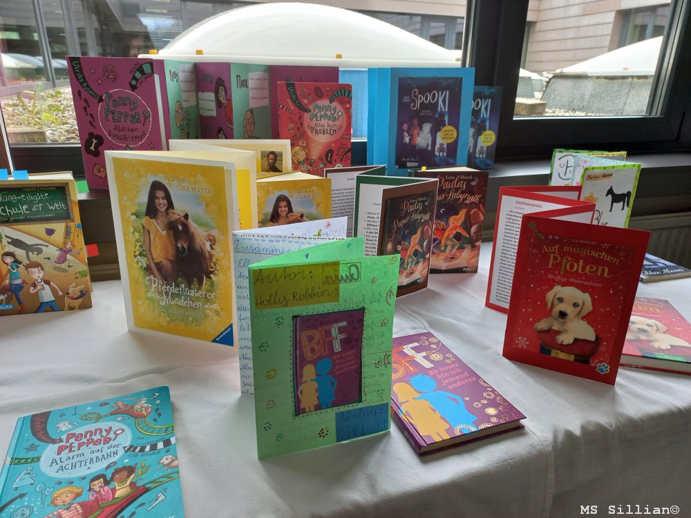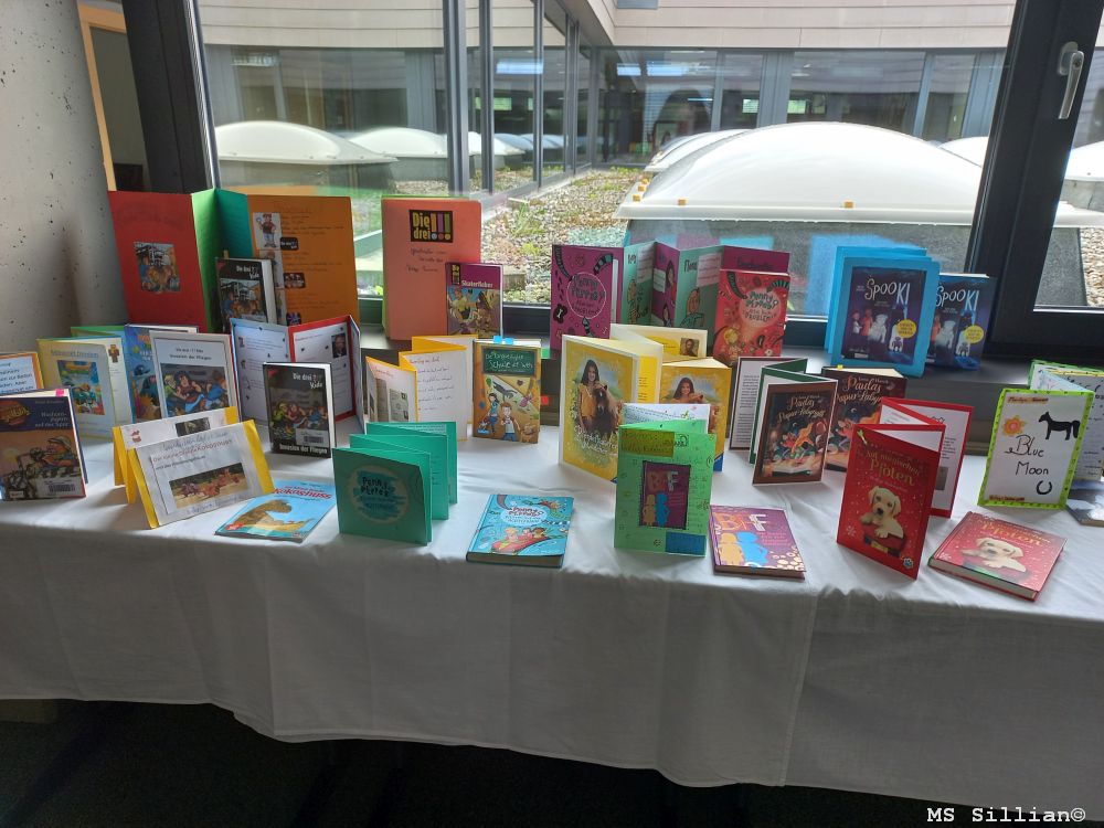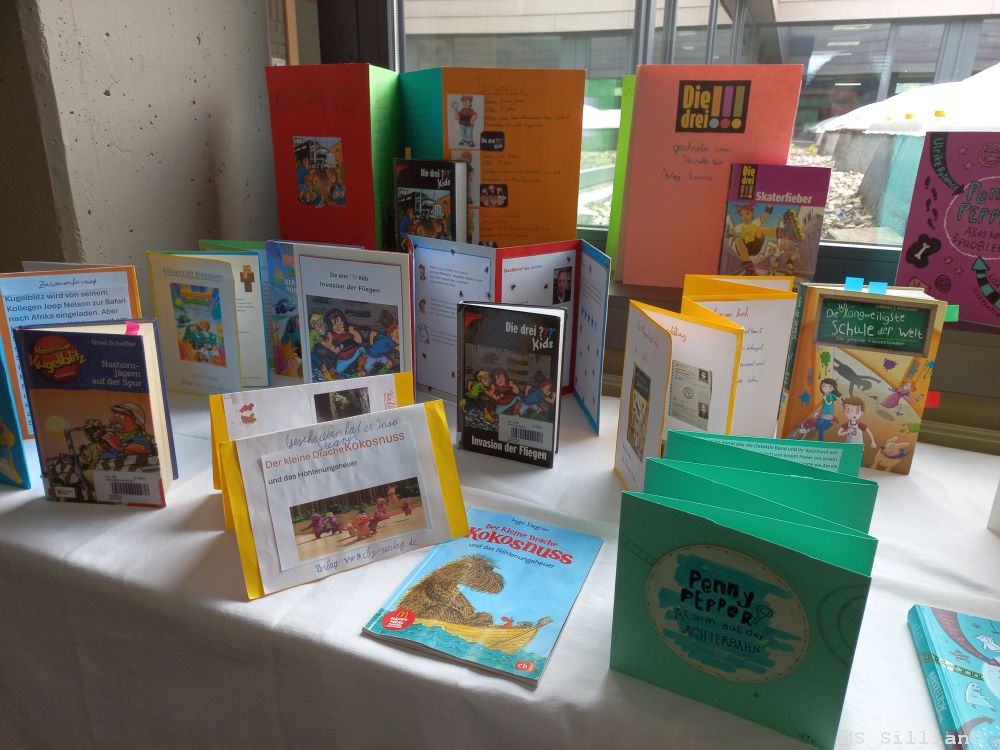 Zurzeit sind die Faltbücher vor den 2. Klassen zur Besichtigung ausgestellt.