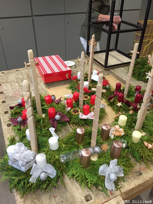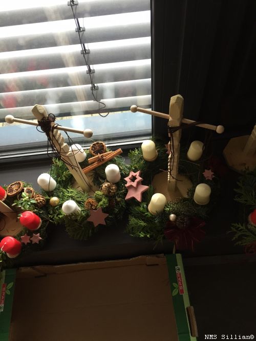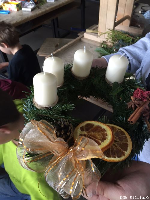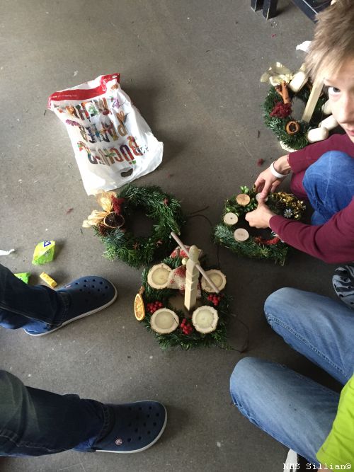 Adventkränze selber winden und Halterung aus Holz anfertigen.