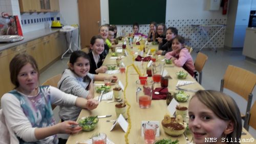 Am 31.01.2017 und am 07.02.2017 fand an der NMS Sillian das Projekt „La cucina italiana“ statt. Die Kinder der ersten Klassen hatten die Möglichkeit ein italienisches Menü zu kochen und konnten dabei in die Genusswelt Italiens eintauchen. Einige Schülerinnen erklärten sich dazu bereit die Tischdekoration im Fach Bildnerische Erziehung anzufertigen. Zudem wurden im Italienischunterricht die fachspezifischen Vokabeln besprochen und erlernt. Das Ziel war es, Italien in all seinen Facetten näher kennenzulernen.