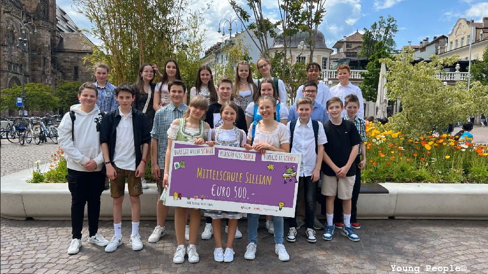 Bozen, 22. Mai 2023 - Insgesamt 49 Schulen aus allen drei Landesteilen nahmen mit großem Eifer am Wettbewerb „Euregio macht Schule“ teil. Die Gewinnerschulen wurden an der Europäischen Akademie Bozen - EURAC ausgezeichnet. Unter den sieben Gewinnern befand sich auch unsere Klasse 4b.