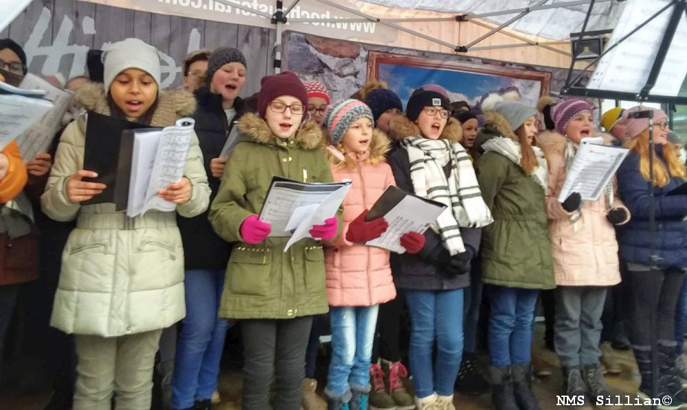 Letzten Samstag, dem 8. Dezember, hatte der Chor der NMS-Sillian unter der Leitung von Frau D´Orlando, begleitet von den Gitarristen Carmen Müller und Peter Pedarnig, einen Auftritt beim diesjährigen Adventmarkt in Sillian. Auch eine Blechbläsergruppe unter der Führung von Herrn Dir. Strasser Andreas wusste mit vorweihnachtlichen Weisen zu überzeugen. Für die Kinder war es eine gute Möglichkeit, bei Auftritten in der Öffentlichkeit Erfahrungen zu sammeln. Fröhliche Weihnachten!