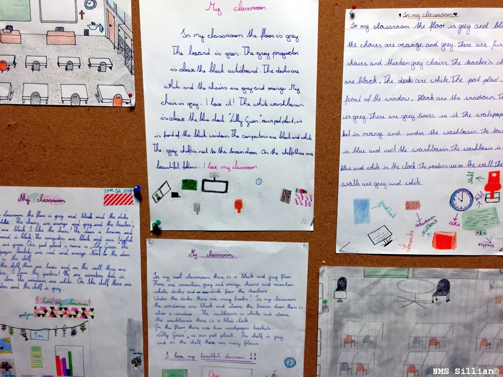 Die Schülerinnen und Schüler der 1. Klassen beschrieben im Englischunterricht ihr Klassenzimmer.