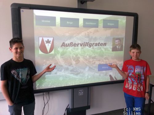 Die Schüler der 3c haben im Informatikunterricht mit diesem Programm eine Präsentation von ihrer eigenen Gemeinde erstellt, die sie auch der gesamten Klasse präsentierten. Es stellt sich heraus, dass unsere neue Whiteboard Tafeln dazu sehr gut geeignet ist, da man per Fingerdruck alles erledigen kann.