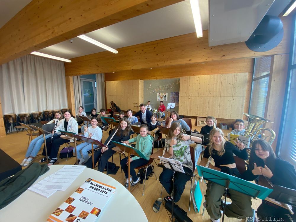 Peter Kostner, ehemaliger Kapellmeister der Wiltener Musik, beliebter Radiomoderator im ORF und Professor an der PHT Tirol, beehrte das Schulorchester mit einem Kurzbesuch. Die SchülerInnen zeigten sich sichtlich begeistert und konnten bei der Präsentation eines Stückes ihrer Wahl ihr Bestes geben.