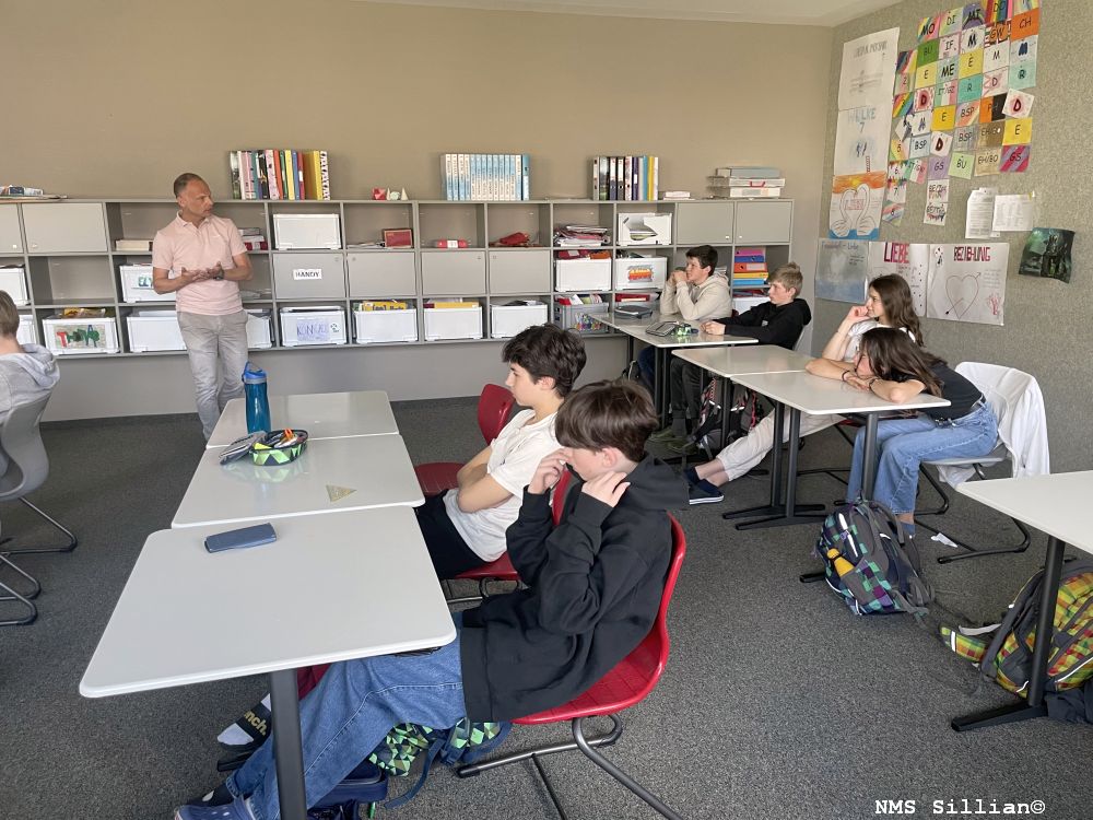 Im Rahmen der Veranstaltung Jugend und Sucht besuchte Herr Revierinspektor Huber David am 5. Mai 2023 die 4. Klassen der Mittelschule Sillian. Den Schülerinnen und Schülern wurde das Thema Sucht als Abhängigkeit und Krankheit näher gebracht. Das Beispiel digitale Medien (Handy, Online Streamingdienste, etc.) holte die Jugendlichen in ihrer Lebensrealität ab, sodass sie ein erstes Verständnis zur Thematik erlangen konnten. Herr Huber erläuterte unter anderem unterschiedliche Suchtformen, und ging auch auf den fließenden Übergang von Nutzen (z.B. Medikamente) zur lebensbedrohlichen Gefahr ein. Weiters wurden Auswirkungen der Krankheit auf Körper und Geist thematisiert. Besonders relevant für Jugendliche war die Aufklärung über das Jugendschutzgesetz in Tirol und in den anderen Bundesländern Österreichs. Die professionelle Aufklärung als Sensibilisierung für das Thema Sucht war für die Schülerinnen und Schüler sehr lehrreich und nicht zuletzt besonders wichtig in dieser prägenden Lebensphase.