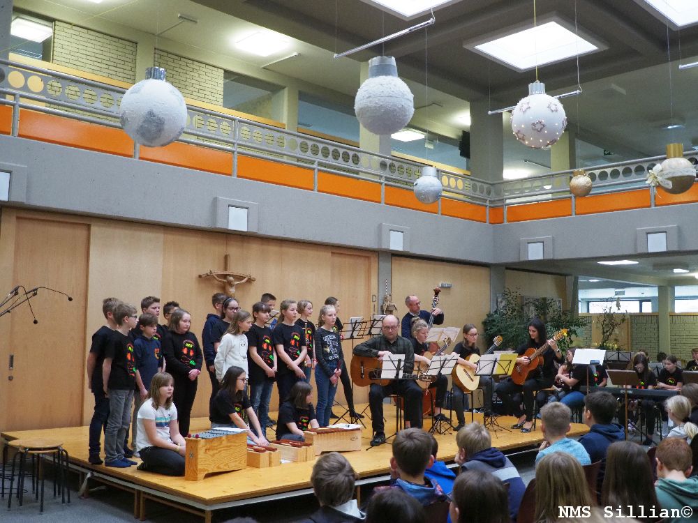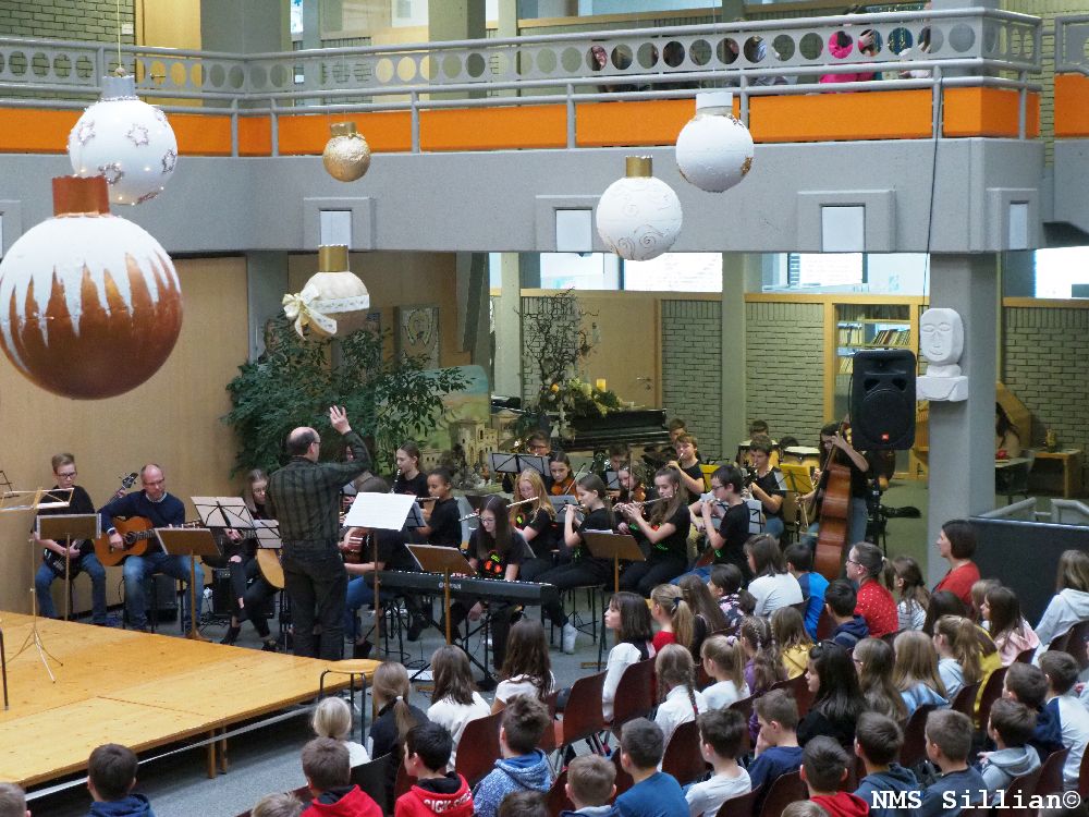 Das Weihnachtskonzert, welches am 19. Dezember 2019 in der Aula unserer Schule stattfand, bot auch heuer wieder ein abwechslungsreiches Programm. Nach der Eröffnung mit einem Musikstück der Bläsergruppe wechselten sich Klassenchöre, Instrumentalensembles, Schulchor und Schulorchester mit instrumentalen und vokalen Beiträgen ab. Nicht fehlen durften auch dieses Jahr zwei kleine szenische Weihnachtsspiele, welche die ZuhörerInnen zum Schmunzeln brachten. Die SchülerInnen des Musikschwerpunkts und die SchülerInnen, welche die Theaterstücke einstudierten, freuten sich gemeinsam mit ihren Lehrpersonen über den großen Applaus des Publikums.