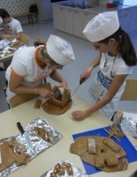 An zwei Nachmittagen wurden die einzelnen Teilarbeiten, vom Teigkneten, über das Ausschneiden, Backen und Zusammensetzen, bis hin zum individuellen Verzieren der Häuser, mit viel Eifer und Engagement ausgeführt.