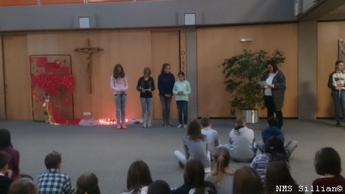Gemeinsam feiern wir in der Aula, mit Lichtern, Texten und Musik, die unser Herz öffnen und uns auf das bevorstehende Weihnachtsfest einstimmen sollen.