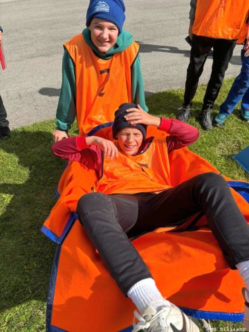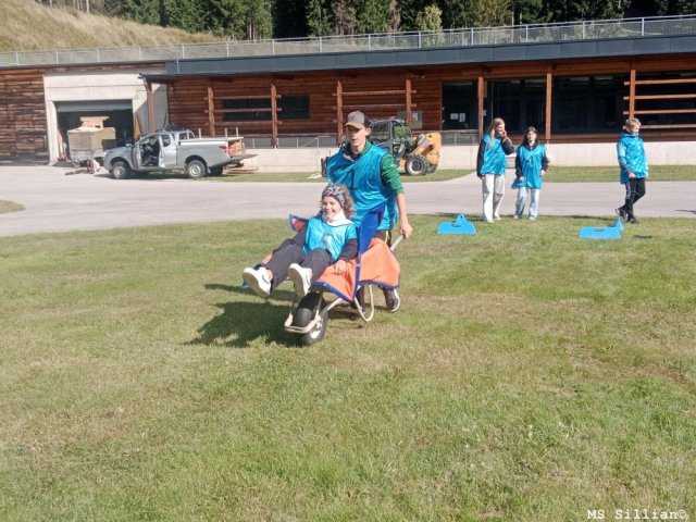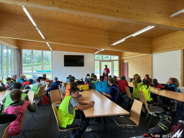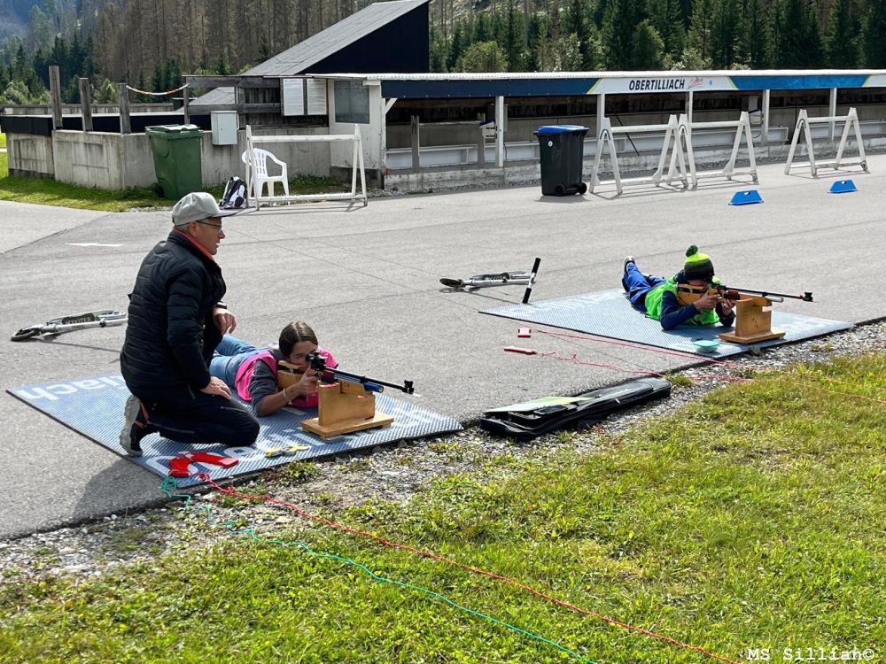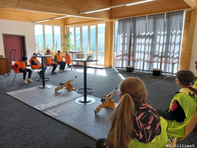 Am Vormittag des 18. Septembers wurde aber für unsere drei vierten Klassen das Langlaufzentrum reserviert. Wir bekamen eine Führung durch die Sportanlage, die zu den attraktivsten in ganz Europa zählt. Wir blickten kurz in die Welt einer Profi-Biathletin, eines Profi-Biathleten. Es ist uns nicht bewusst gewesen, dass Biathlon eigentlich eine sehr „alte“ Sportart ist. Die Ausdauer beim Laufen, die Präzision beim Schießen und das Taktieren im Team sicherte bereits unseren Vorfahren in der Urzeit das Überleben. Genau in diesen 3 Grundkompetenzen durften sich dann unser Schüler:innen beweisen. Das Team des Sportzentrums stellte für uns einen Stationenbetrieb zusammen, der mit großem Fun-Faktor den Ehrgeiz und Kampfgeist weckten. Die „Tiger Girls“ konnten schließlich den Anforderungen am besten gerecht werden und sich die süßen Erste-Platz-Medaillen umhängen lassen.