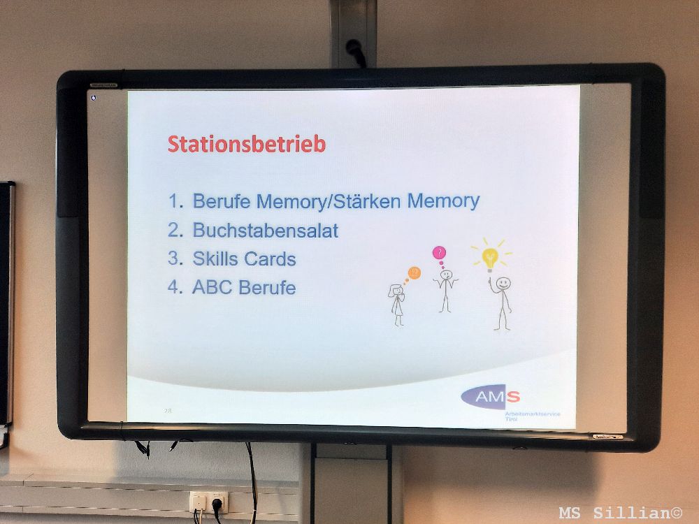Heute, am Freitag den 31. März, besuchte uns Katharina Schneider vom AMS Lienz, die uns Informationen über Berufe und Ausbildungswege näherbrachte.