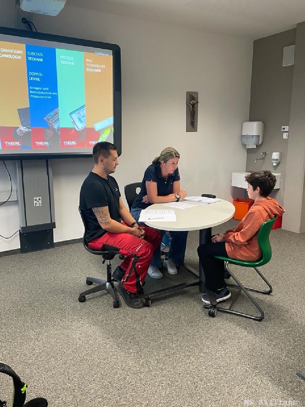 In den zwei Unterrichtsstunden informierten uns die Workshopleiterin Tanja Köhler (Bildungsconsulting/ TIROLER Wirtschaftskammer) und die beiden Lehrlingsbeauftragten der Firma Theurl, Doris und Christoph, über den Ablauf und die Kriterien eines Vorstellungsgespräches.