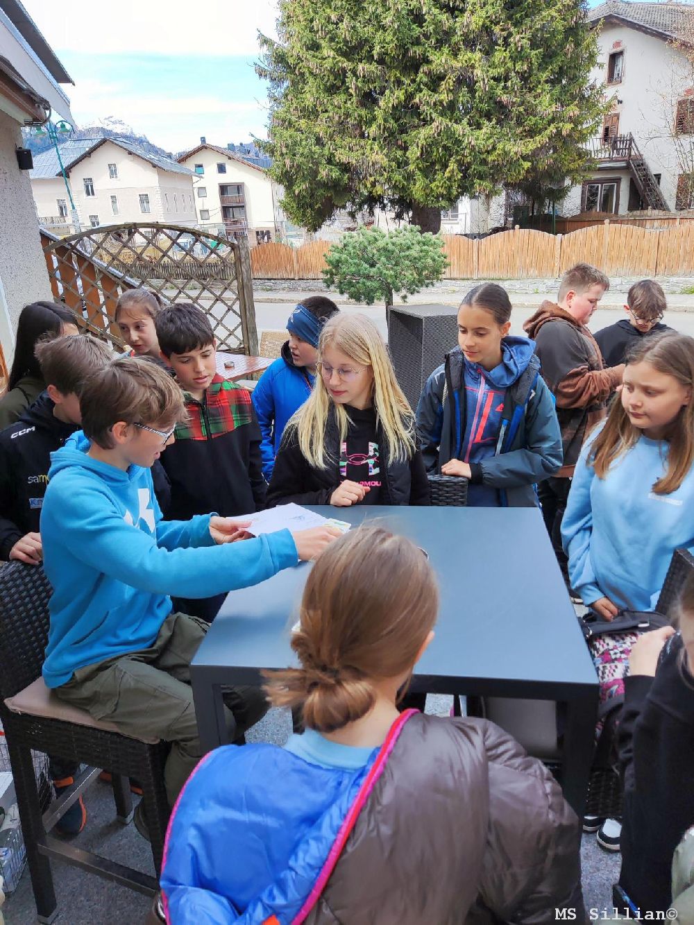 Am Vormittag starteten wir mit einem Dorf-Rallye duch Toblach. Wir sahen uns die Kirche und noch viele weitere Sehenswürdigkeiten in Toblach an. Wir lernten auch die Bewohner des Dorfes kennen, weil wir Straßenumfragen durchführten. Nach der circa drei stündigen Dorf-Rallye gingen wir wieder zurück in die MS Toblacher und bekamen dort Lasangne Mit Salat zum Mittagessen und als Nachspeise gab es noch ein leckeres Eis.