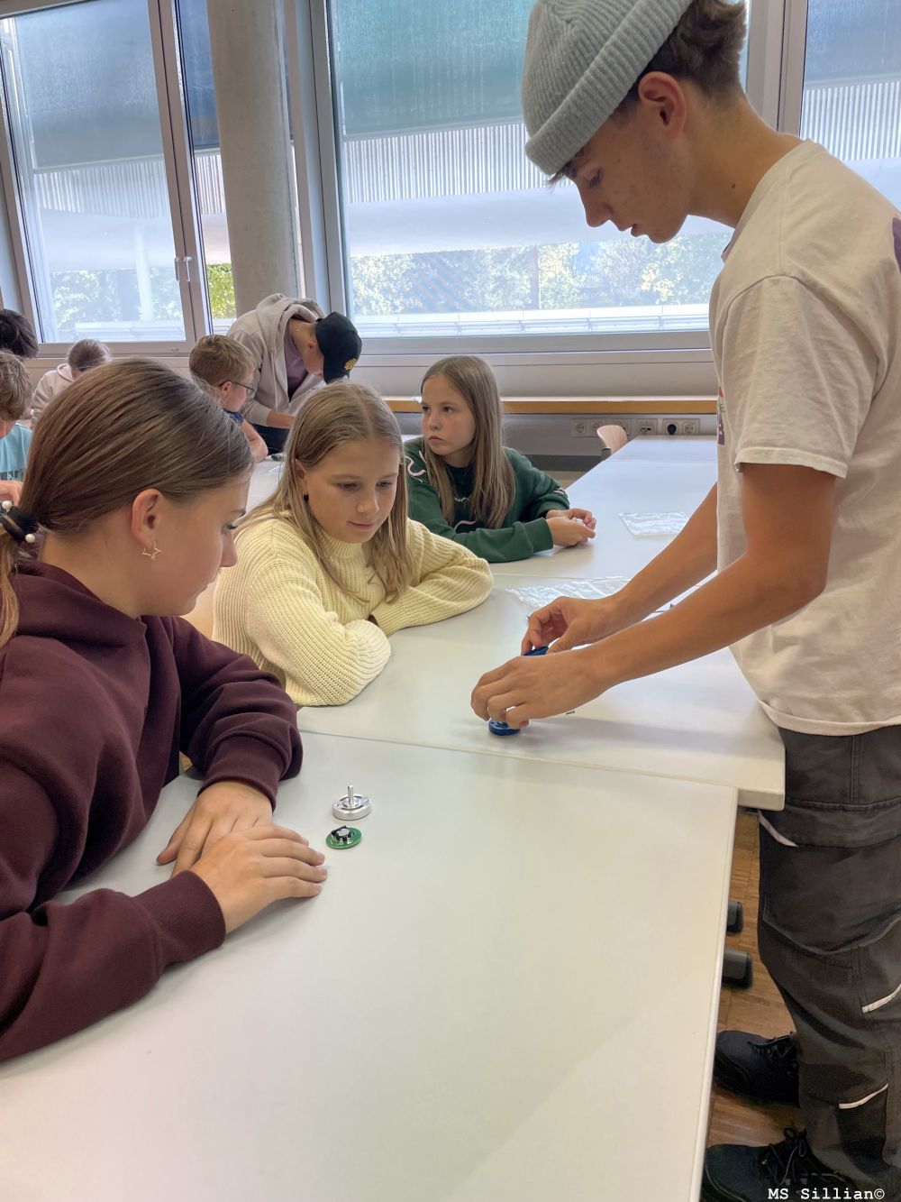 Unsere MINT-Gruppe durfte einen spannenden Einblick in die Welt der Technik an der HTL gewinnen. Gemeinsam mit den Schüler:innen der Schule fertigten die Schülerinnen und Schüler einen Kreisel mit LED-Beleuchtung an.