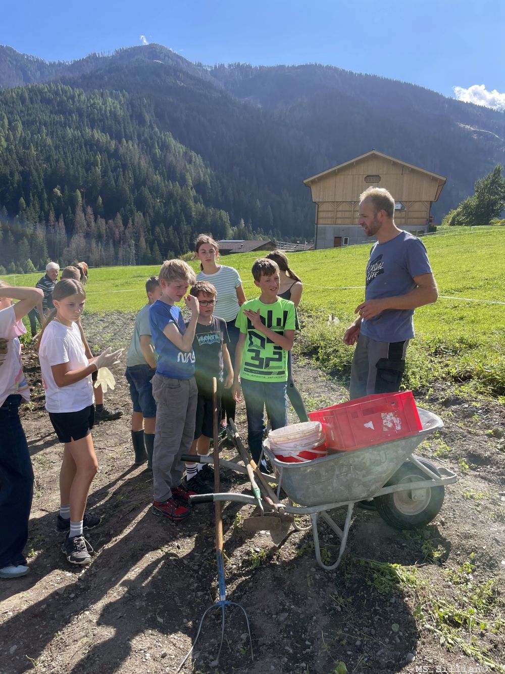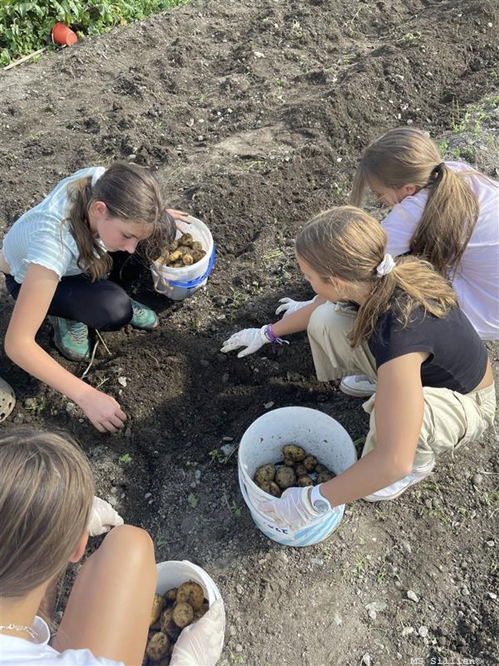 im Laufe der Zeit richtige Pflanzen wurden. Nach den Sommerferien konnten wir dann endlich ernten – und das war gar nicht so einfach! Mit Schaufeln und viel Eifer haben wir die Kartoffeln aus der Erde geholt und stolz unsere Ernte bestaunt.