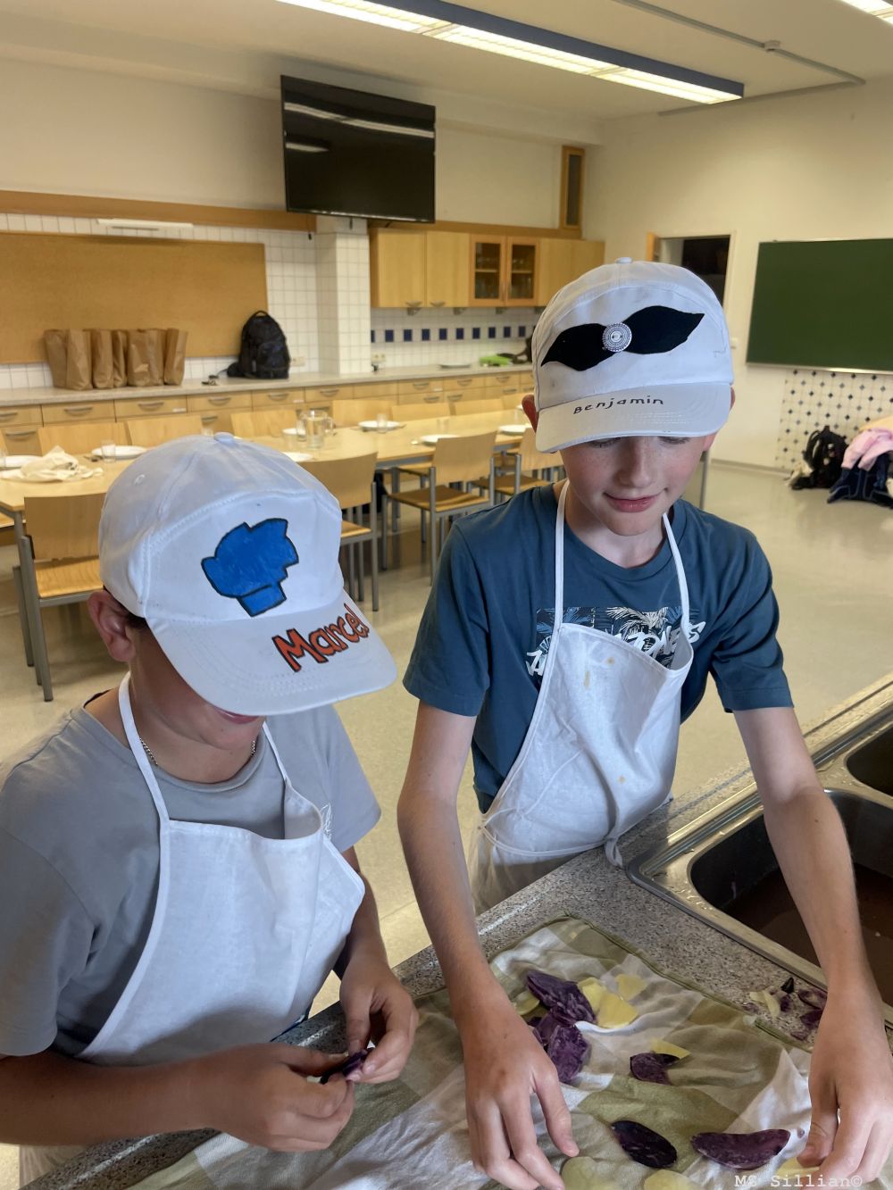 Natürlich wollten wir die Kartoffeln nicht nur anschauen, sondern auch probieren. In der Schulküche haben wir daraus eine leckere Kartoffelsuppe und ein herzhaftes Geröstl gekocht. Außerdem haben wir aus unseren violetten Kartoffeln im Airfryer knusprige Chips gemacht – die sahen nicht nur cool aus, sondern schmeckten auch richtig gut!
