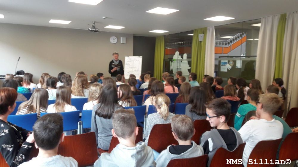 „Es kann beginnen“, so startete Franz S. Sklenitzka seine Vorlesung am 10. 4. 2018 im Mehrzwecksaal der NMS-Sillian.