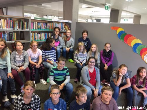 Das Buch „Tim und das Geheimnis von Knolle Murphy“, eine eindrucksvolle Bibliothekarin, wurde ihnen auf unterhaltsame Weise präsentiert und sorgte für so manchen Lacher. Nach den drei Stunden sind den Kindern nun Fachausdrücke wie Signatur, Belletristik, Autor usw. geläufig und sie finden sich schon recht gut zurecht, wenn sie den Auftrag erhalten, ein bestimmtes Buch ausfindig zu machen oder richtig einzuordnen.