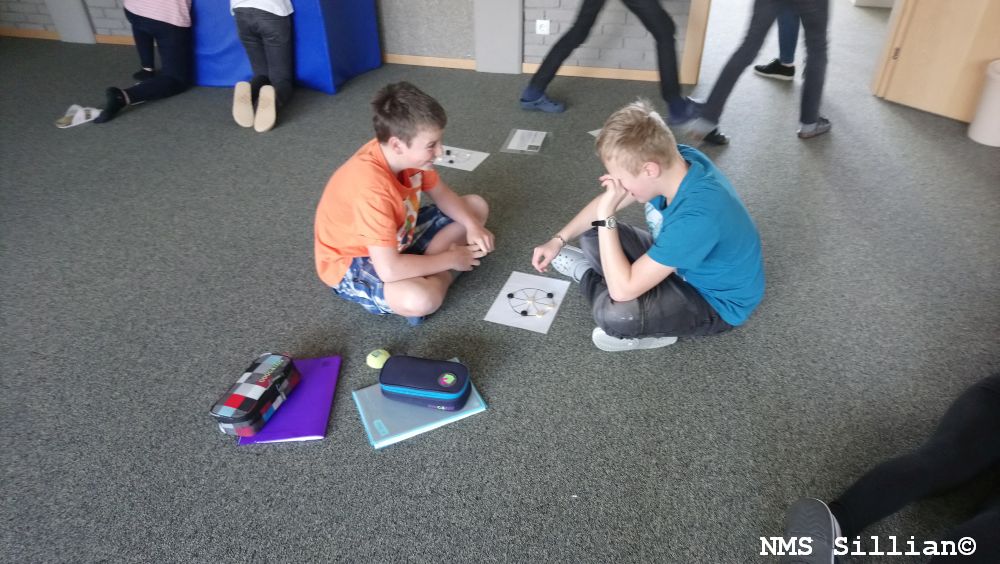 Aber auch die Praxis kam nicht zu kurz. Die Kinder tanzten einen mittelalterlichen Reigen, spielten Orca, Cochonnet und Rundmühle und versuchten sich mit Federkiel und Tinte, nach dem Vorbild der Mönche des Mittelalters, am kunstvollen Schreiben von Buchstaben. Die technisch Interessierten „erbauten“ mit Hilfe einer Anleitung ein mittelalterliches Kloster.