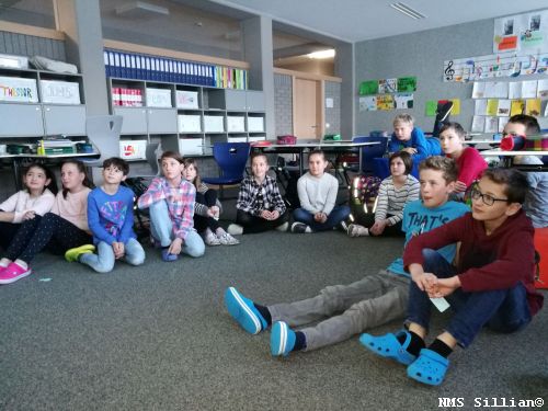 Schülerinnen der 4. Klassen lasen in der VS Heinfels und in der VS Sillian die Bilderbuchgeschichte „Die Anderen“ mithilfe eines Erzähltheaters vor. Die Unterschiede zwischen Hausschwein und Wildschwein wurden erarbeitet, dabei überraschten die Volksschüler mit ihrem Wissen über die Tiere.