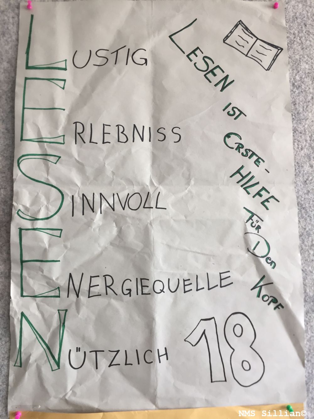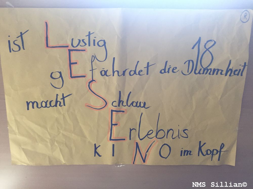 Am 16. November fand der 2. Tiroler Vorlesetag statt. Plakate machten ab 6. November auf die Aktion neugierig. Überall im Schulhaus hingen täglich erweiterte Botschaften wie „Ich freue mich auf den 16. November. Du auch?“, „Am 16. November haben wir es besonders fein“ oder „Es dauert nicht mehr lange bis zum 16. November.“ Gespannt warteten die Schüler auf diesen Tag.