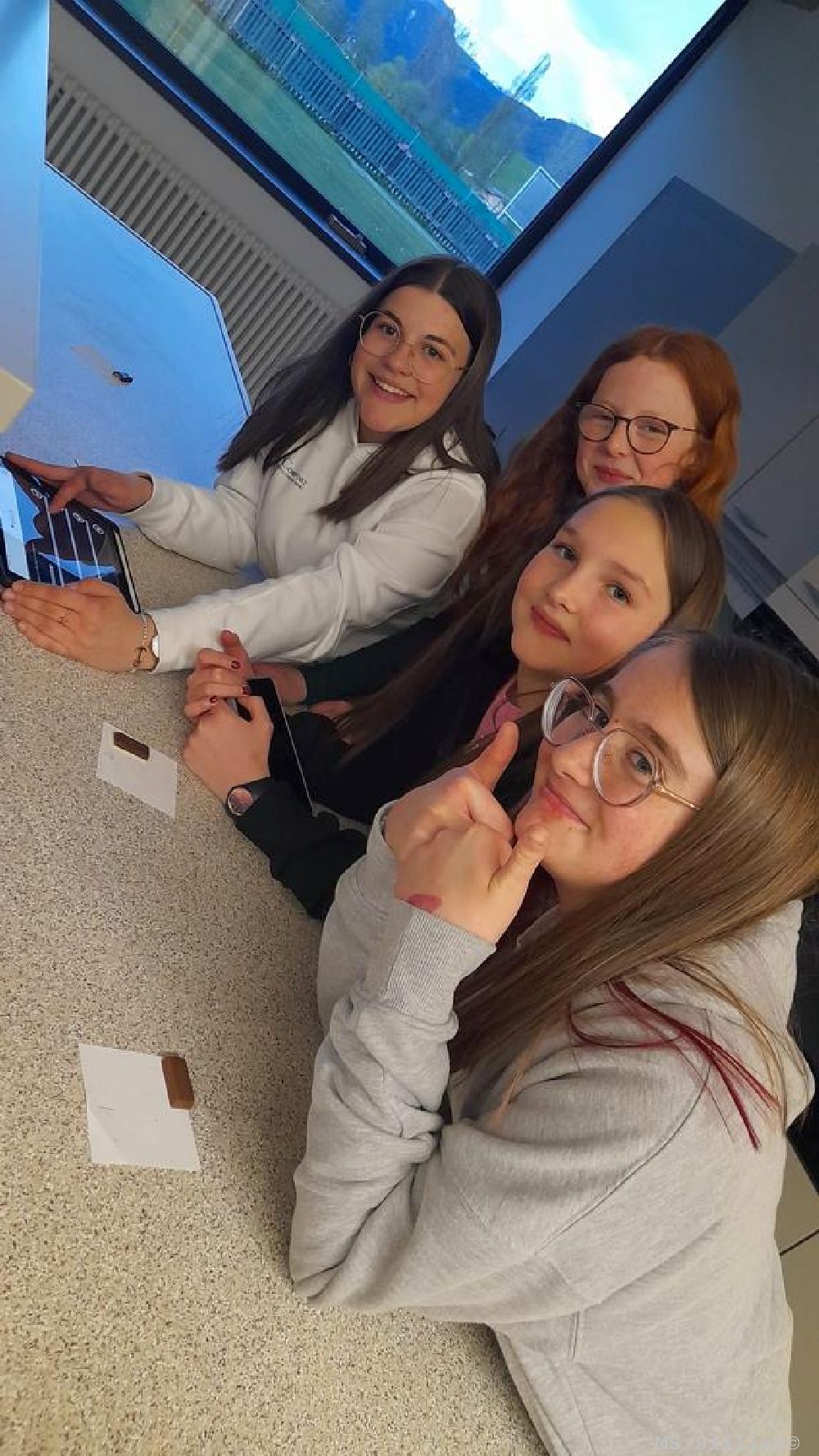 Nachdem die Schüler*innen die App „Action Bound“ auf ihrem Tablet heruntergeladen hatten, wurde ihnen die Anleitung für die interaktive Schnitzeljagd, die sie quer durch das gesamte Schulhaus führte, auf ihr Tablet gespielt.