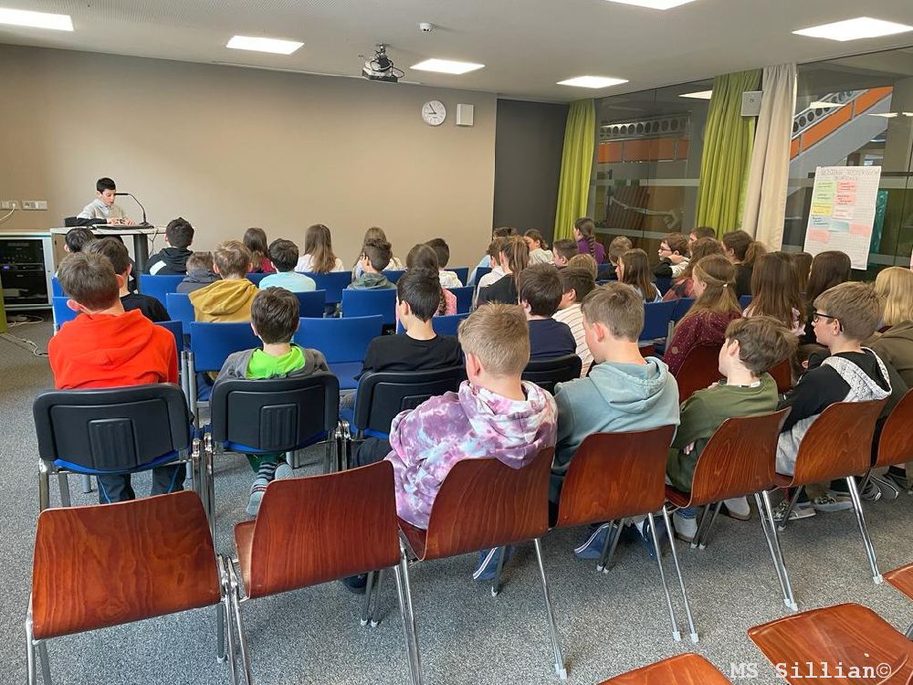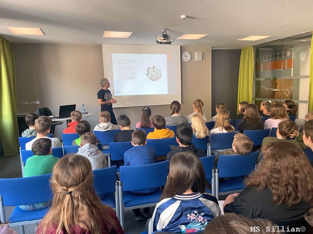 Der gebürtige Lienzer Matthias Bauer stellte für die Kinder der ersten und zweiten Klassen sein neuestes Buch „Vollmondlegenden: Das Geheimnis der Vampire“ vor. Dabei geht es um eine ganz besondere Bibliothek, die nur bei Vollmond betreten werden kann. Felix, Emily, Daniel und Mila werden in die fantastische Welt der Vollmondbibliothek buchstäblich hineingesogen und finden so jede Menge über Vampire heraus. Dieses Wissen werden sie bald dringend benötigen, wenn in ihrer Stadt die unheimlichsten Dinge geschehen.
